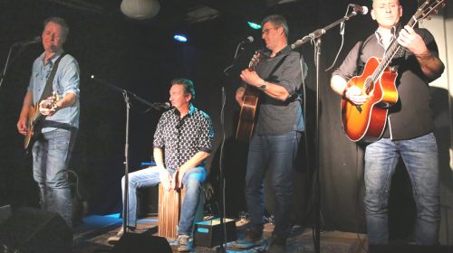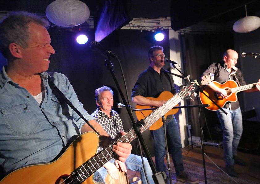 De avond werd afgesloten met een fantastisch optreden van de Vrienden van Straks (foto). Dit Wageningse gezelschap speelt al jaren met elkaar en dat was goed te merken. Het ene ijzersterke liedje na de andere, vlekkeloze meerstemmige zang, veel humor in en tussen de liedjes en veel interactie met het publiek. Zo eindigde het tweede AkoestiCafé in een waar muzikaal feestje.