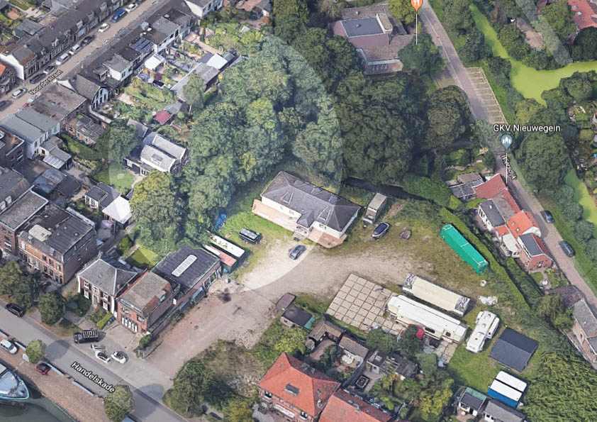 De ligging van het bos. Rechts op het terrein komen nieuwe woningen. op de plek van het bos zouden twee woningen moeten komen. ‘Zonde en onnodig’ aldus de belangengroep.