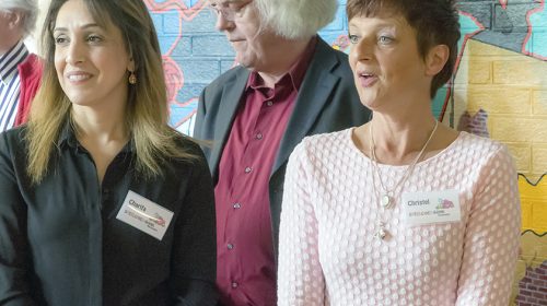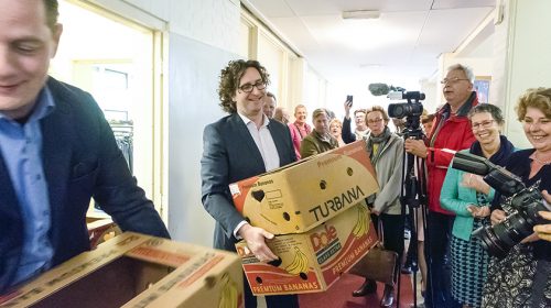 Wethouders Hans Adriani en Martijn Stekelenburg openden woensdag 12 april 2017 officieel de deuren. Truus van Wijk en Marion van Roessel zijn vrijwilliger bij de Kledingbank en verwachten weer veel mensen komende tijd voor de eerste zomerkleding. Marion: ‘Gelukkig hebben we nu een groter gebouw met een ruimere winkel, zodat we de drukte beter aan kunnen. In het oude gebouw aan de Archimedesbaan moesten mensen soms buiten wachten omdat er gewoon niet genoeg plaats was. We zijn daar echt uit ons jasje gegroeid.’