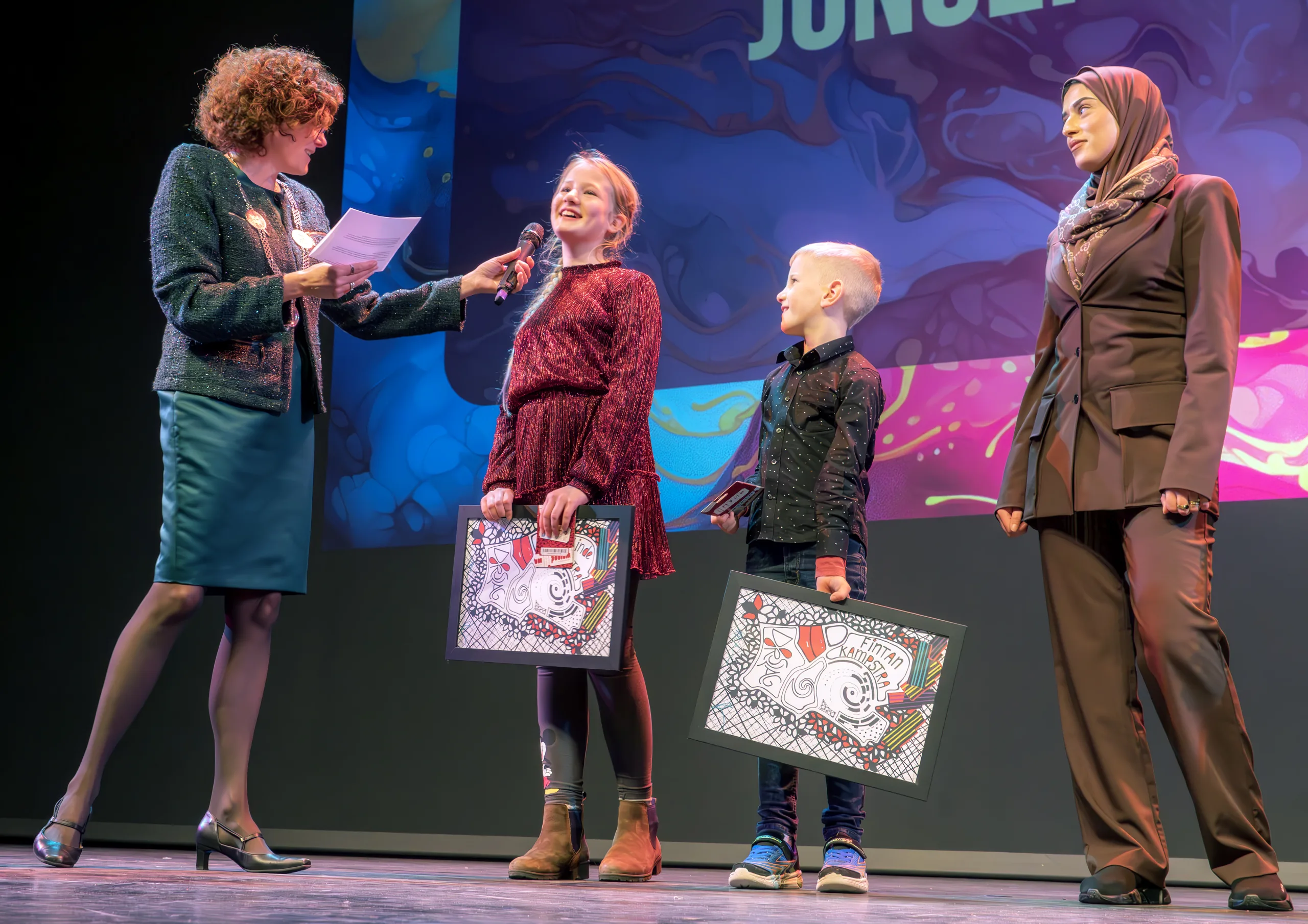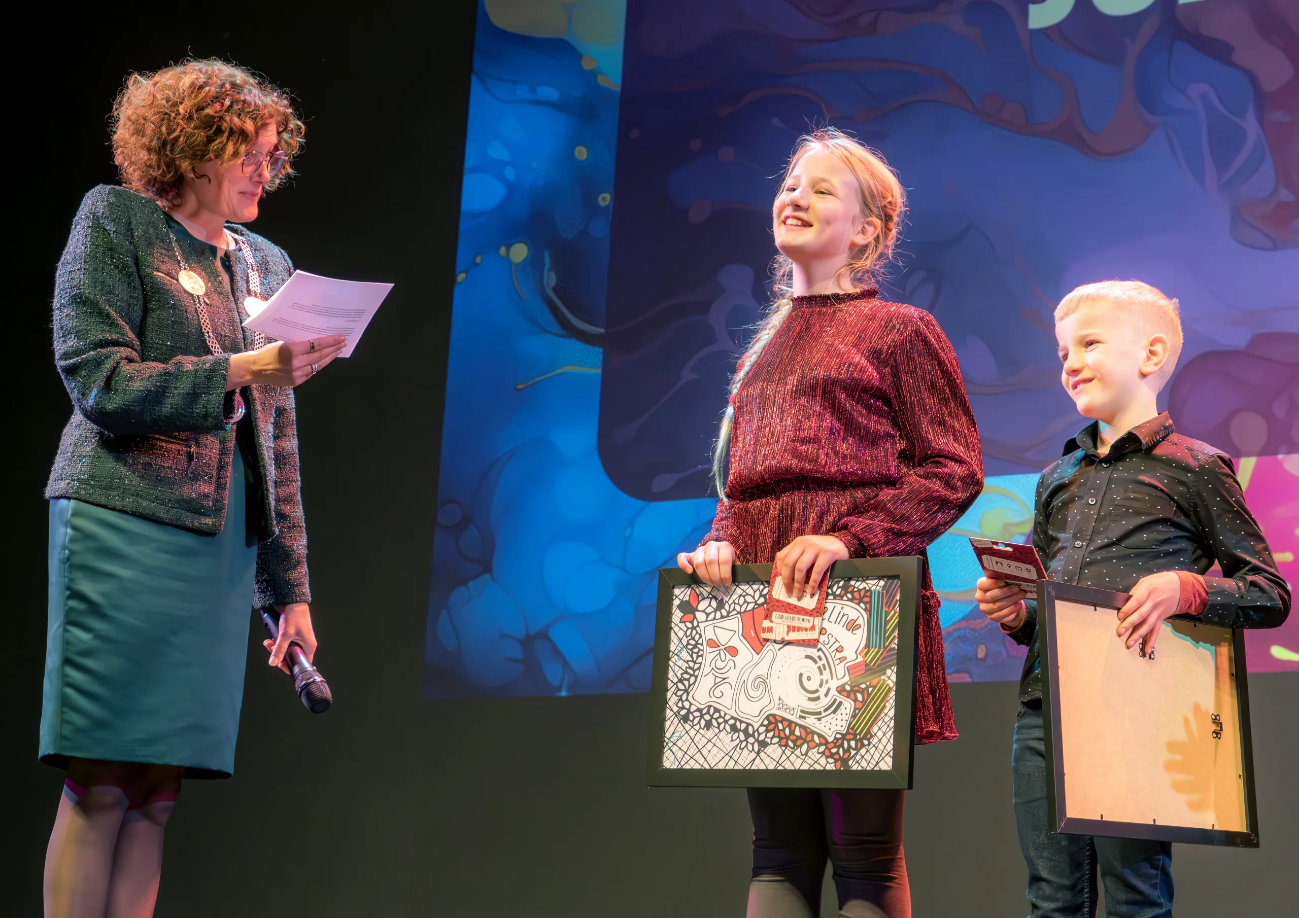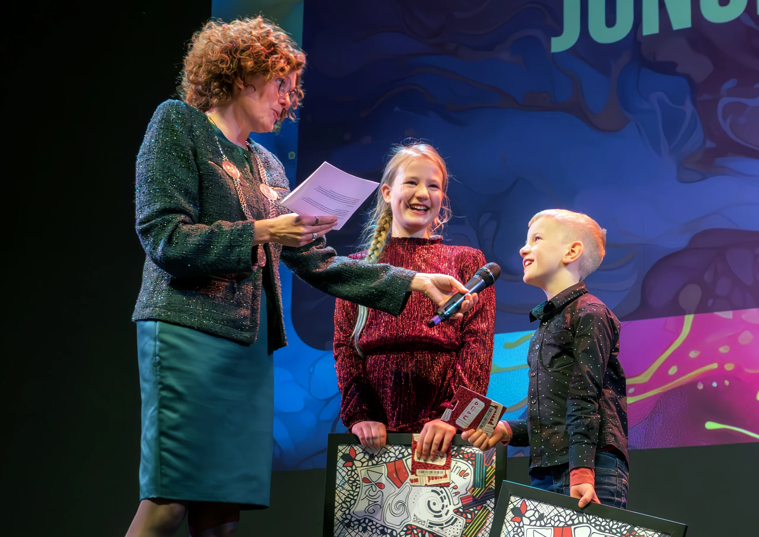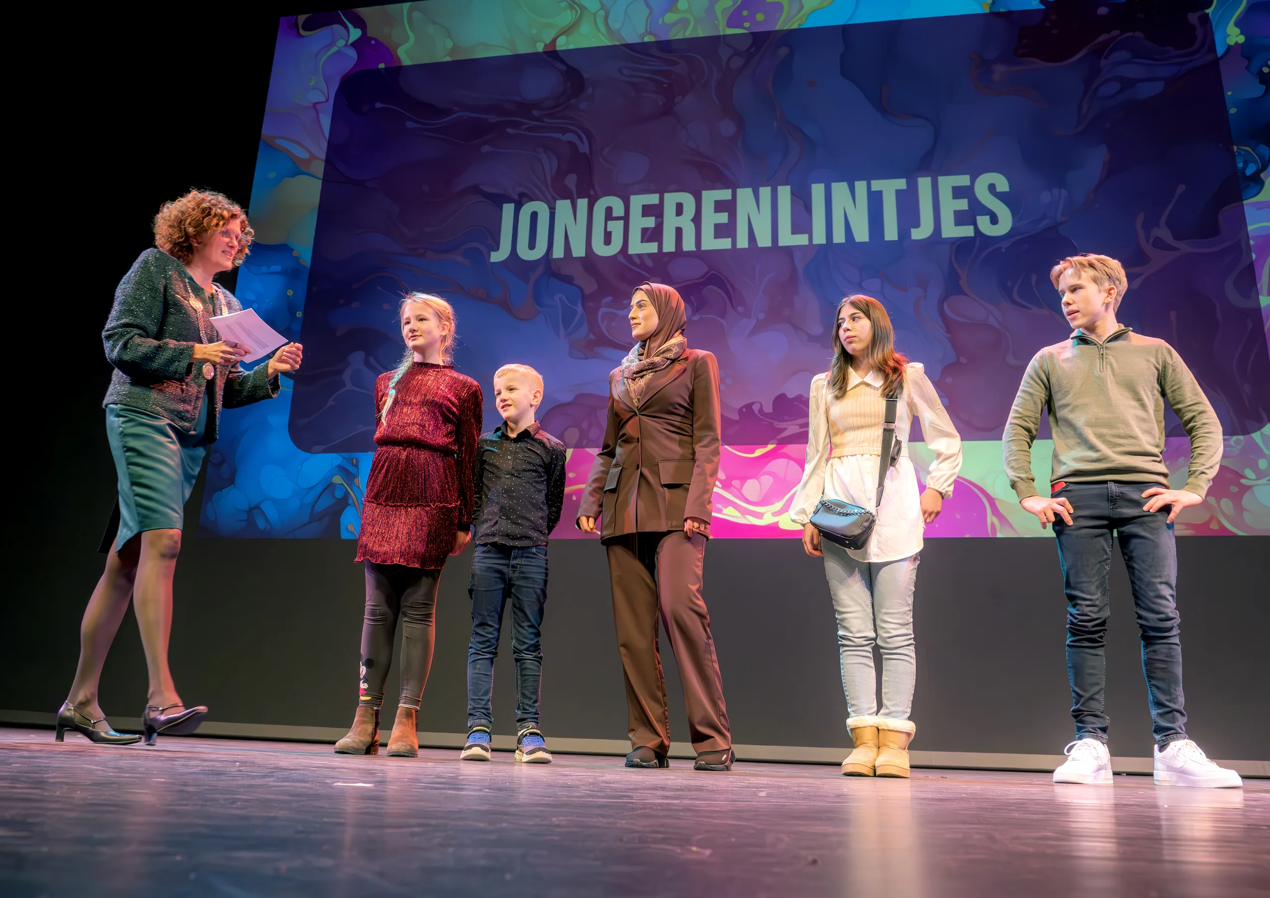 Op maandagavond 8 januari heeft burgemeester Marijke van Beukering vijf jongerenlintjes uitgereikt tijdens het Nieuwjaarsfeest in Stadstheater DE KOM. Het jongerenlintje De Doorslag werd dit jaar uitgereikt aan Roselinde Kampstra, Fintan Kampstra, Aya el Kouskous, Asude Saglik en Floris Koopmans.