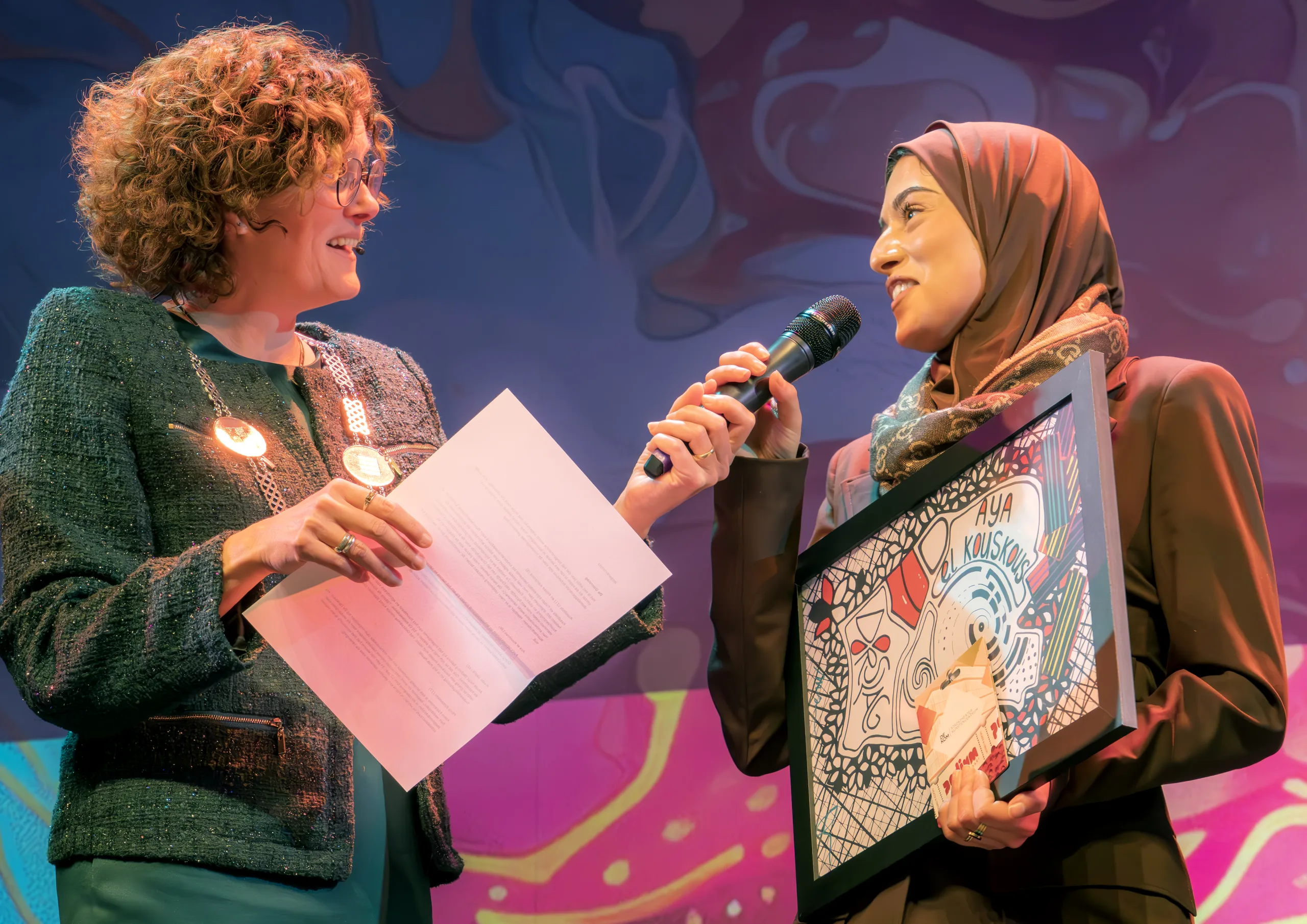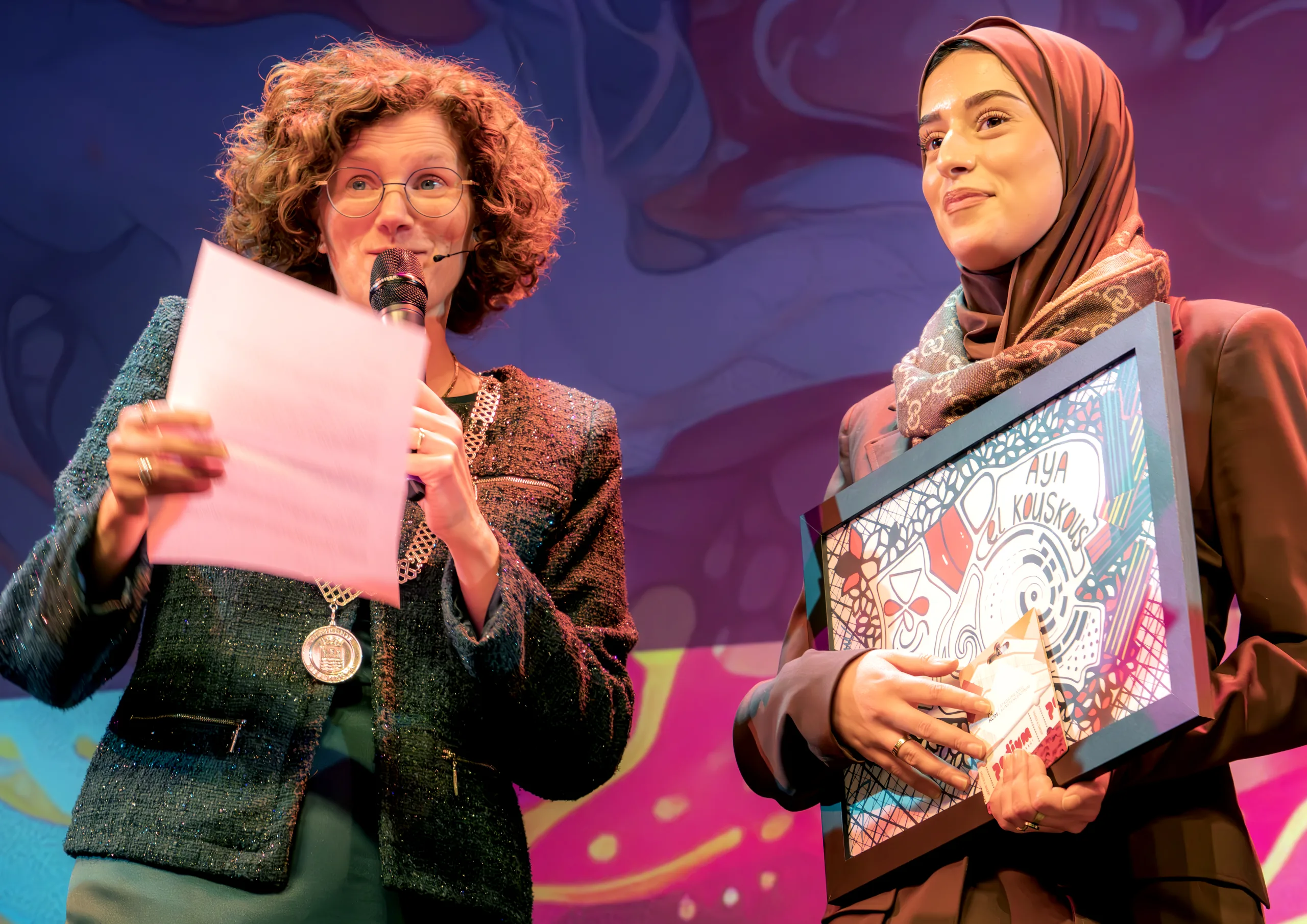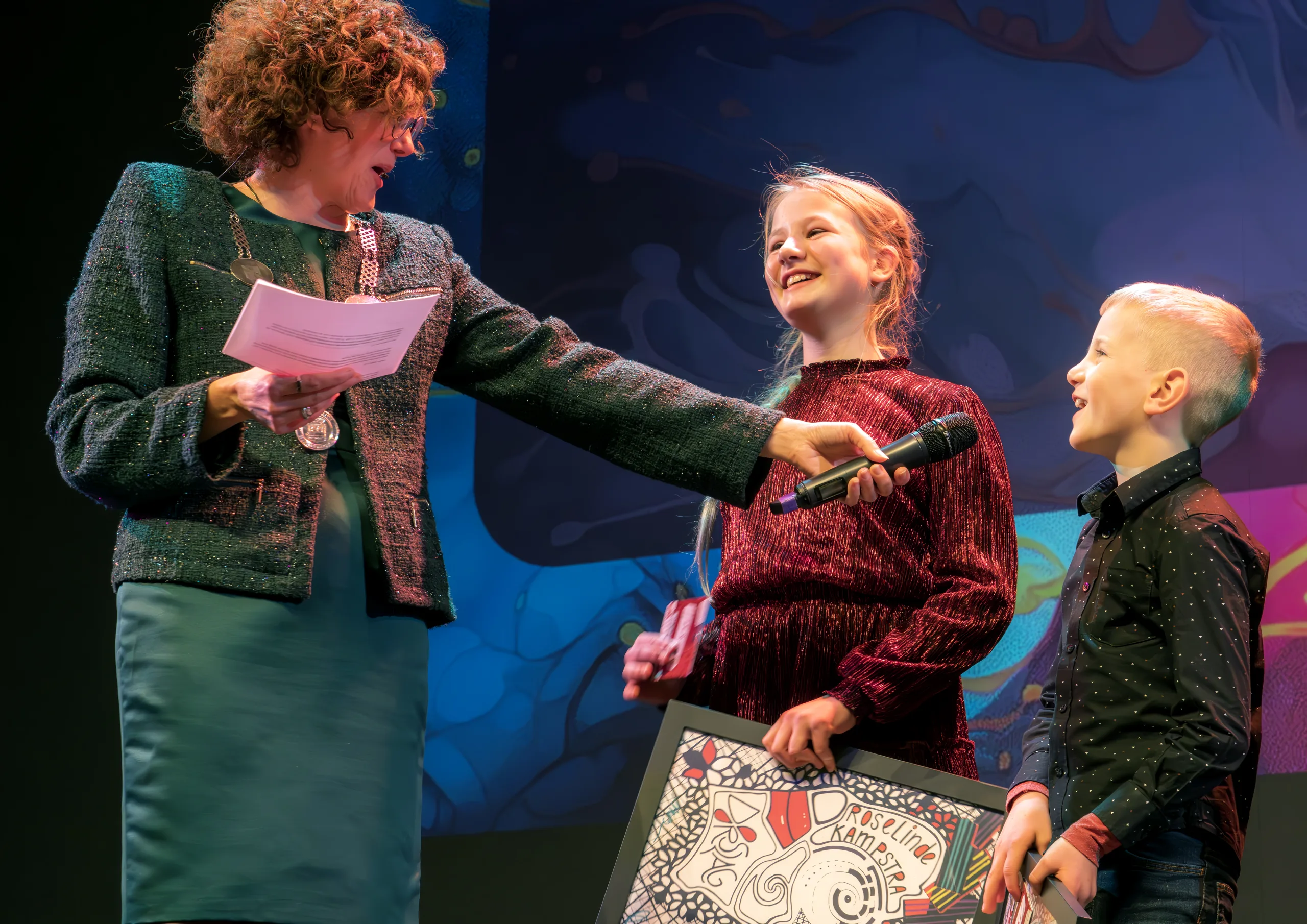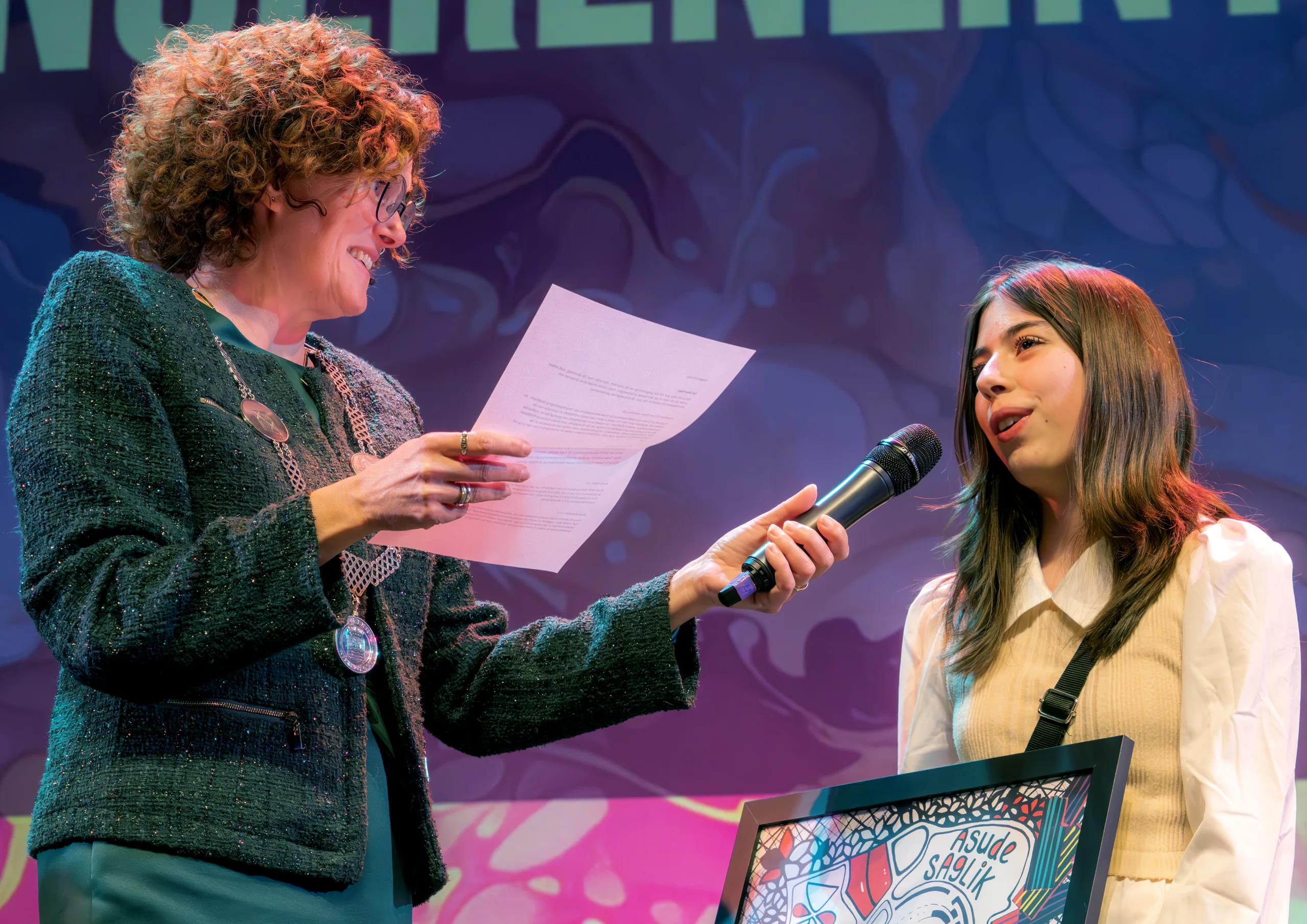 Op maandagavond 8 januari heeft burgemeester Marijke van Beukering vijf jongerenlintjes uitgereikt tijdens het Nieuwjaarsfeest in Stadstheater DE KOM. Het jongerenlintje De Doorslag werd dit jaar uitgereikt aan Roselinde Kampstra, Fintan Kampstra, Aya el Kouskous, Asude Saglik en Floris Koopmans.