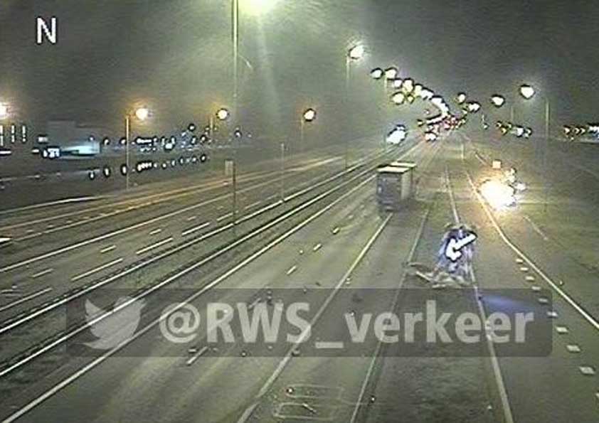 Vanwege werkzaamheden waren twee rijstroken van de snelweg afgesloten. De bestuurder van de vrachtwagen merkte dat niet op en ramde een pijlwagen. De vrachtwagen en de pijlwagen raakten flink beschadigd en zijn afgevoerd. De bestuurder van de vrachtwagen raakte niet gewond.