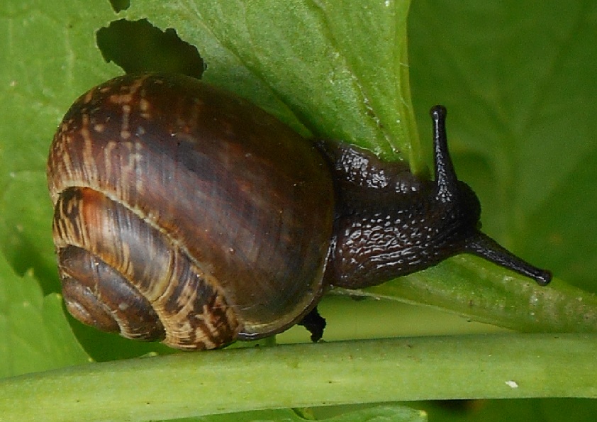 Udo: ‘Ik borduur nog even door op de Nieuwegeinse huisjesslakken. Allemaal even klef, maar mooier dan de naakte slakken. Bij deze: de heesterslak.’