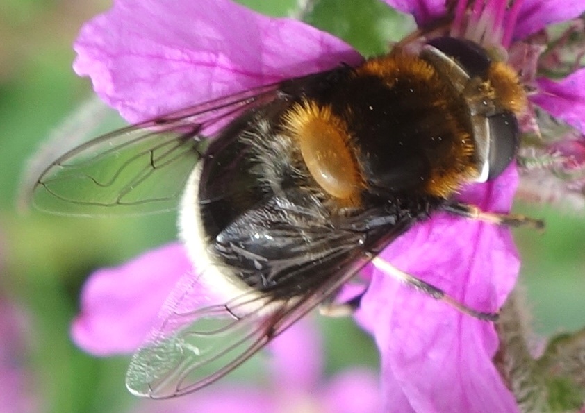 Udo: ‘Bij de zweefvliegen in Nieuwegein vliegen heel wat beestjes rond die sterk op een hommel lijken. Van dichtbij bijkt al snel dat het nephommels zijn en een zeldzame, ook de grootste, is in Nieuwegein de grote fophommel. Zoek de verschillen…‘
