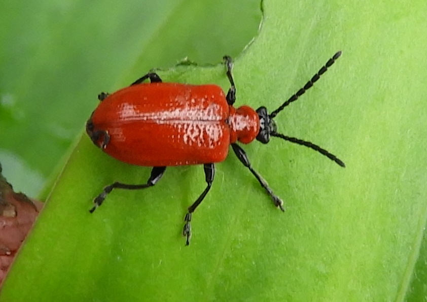Udo: ‘Wie wel eens lelies in de tuin heeft geplant, zal ze vast wel kennen: de leliehaantjes. Knalrode kevertjes (ze lijken precies op zwartkopvuurkevers, maar die zijn duidelijk groter en mat glimmend). De leliehaantjes zijn gek op lelies, de larven ook. Zó heb je hoog opgaande lelies in knop, zó heb je stengels met hier en daar wat bladresten. Als je er op tijd bij bent, verwijder dan (met de hand) alle larven en kevertjes die je ziet. Misschien…’