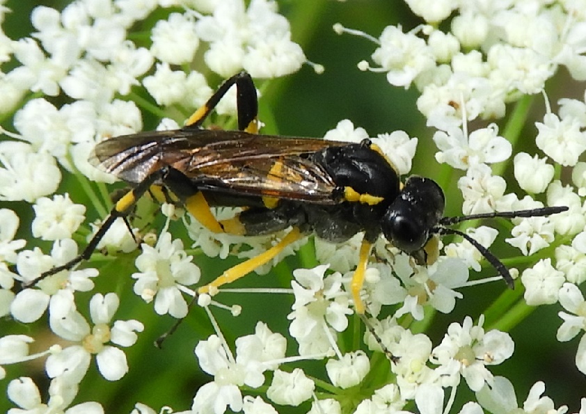 Udo: ‘Als je tijdens een Nieuwegeinse wandeling wilt uitzien naar bladwespen, kun je kijken of je ze op een blaadje kunt waarnemen. Het is gemakkelijker uit te zien naar witte schermbloemen, want er staat in voorjaar en zomer altijd wel een plant met deze bloeiwijze in bloei en vaak zitten er dan ook insecten op, zoals deze “macrophya montana“. Ze heeft nog geen Nederlandse naam.’