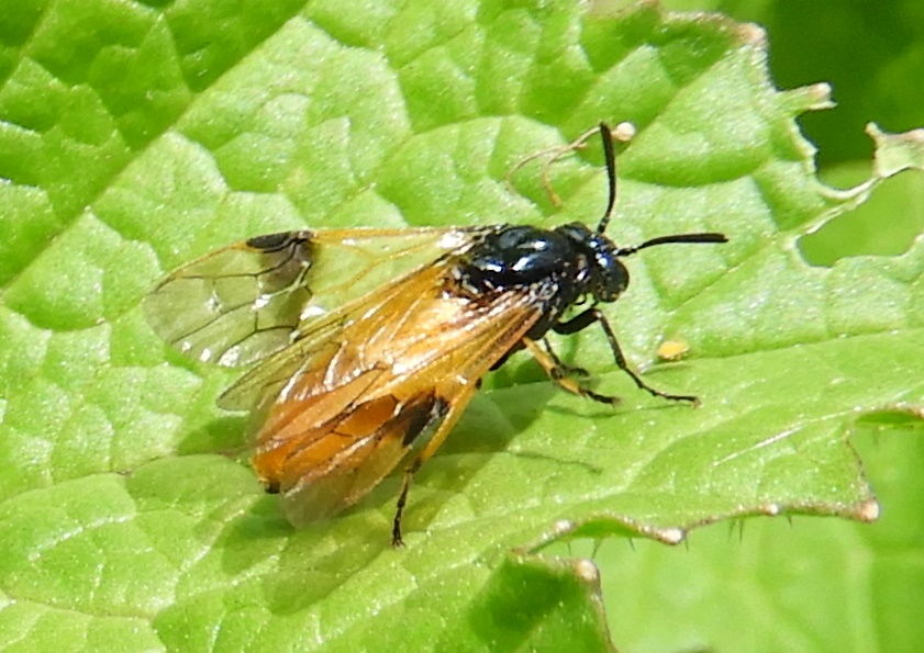 Udo: ‘Vorig jaar heb ik nogal wat “nieuwe” vondsten gedaan op het gebied van bladwespen. Daar zijn er heel veel van in Nieuwegein. Sommige zijn heel klein, zwart en onopvallend maar de kleurige zijn in de meerderheid. Bij deze laatste hoort deze naamloze arge cyanocrocea, hoe komen ze d’r op…’