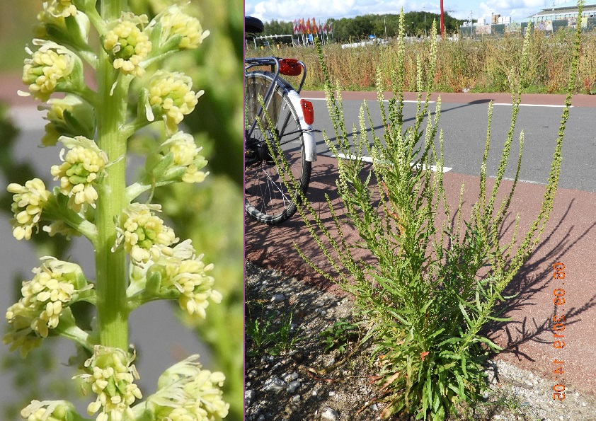 Udo: ‘Reseda is een tuinplantje tot zo’n 40 cm hoog, komt oorspronkelijk uit Noord-Afrika en ruikt lekker. Maar er komt in Nieuwegein ook een wilde reseda voor, tot 60 cm hoog en nu vond ik zowaar Wouw, ook een wilde reseda van wel een meter hoog. Wauw!’
