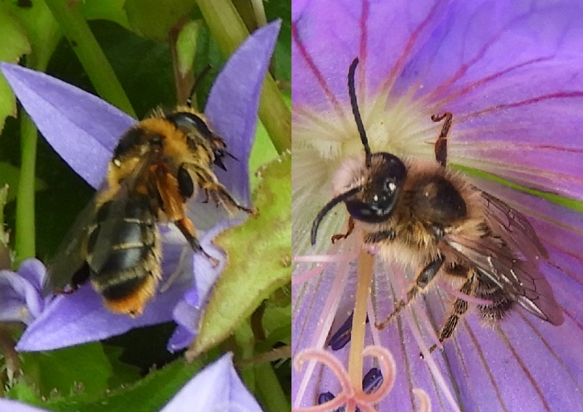 Udo: ‘Dikpoten? Nou ja, als een bepaalde familie van zweefvliegen platvoetjes genoemd worden, dan mogen dikpootbijen ook geen probleem zijn. De verschillende soorten dikpoten zijn verknocht aan bepaalde bloemen. In mijn tuin zijn er af en toe klokjes-dikpoten. Het mannetje neemt ook genoegen met “lookalikes”, zoals ooievaarsbekken.’