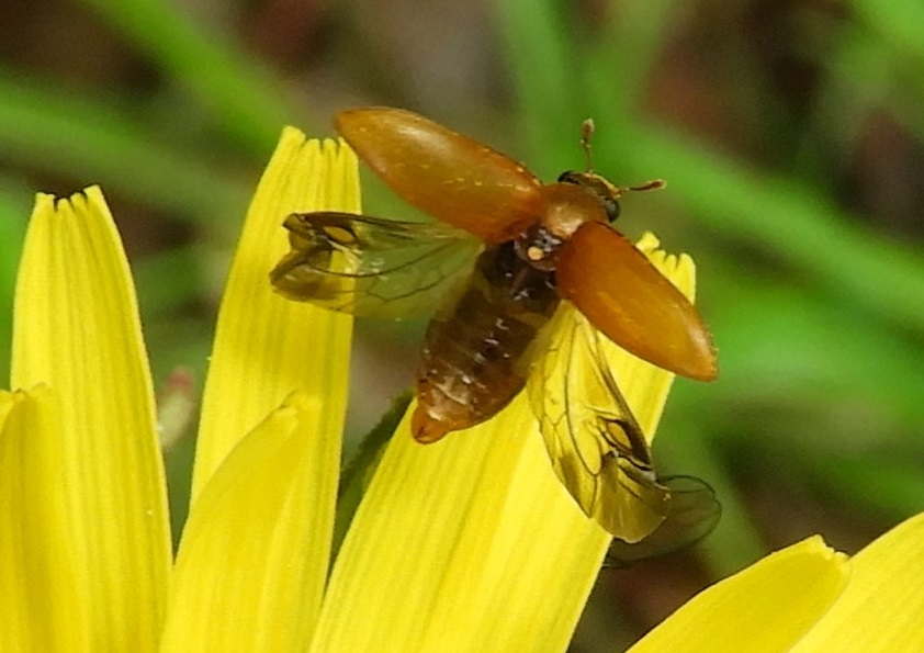 Bij de foto: ‘Frambozenkevertjes gebruiken o.a. boterbloemen om zich te voeden èn om zich voort te planten. Je kunt ze echter ook op allerlei andere bloemen zien en ze verplaatsen zich op dezelfde wijze als vakantiegangers, ze vliegen. Zoals deze.’