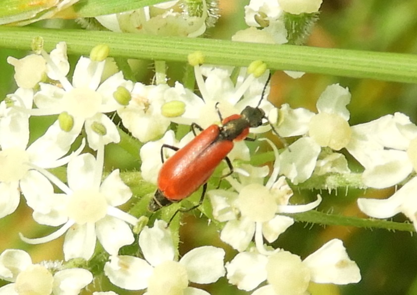 Udo: ‘Er zijn ongelooflijk veel soorten insecten in Nieuwegein en daarvan vind je de meeste soorten bij de kevers. Maar veel soorten leiden een laag-bij-de-gronds of een nachtelijk bestaan, die krijg je maar zelden te zien. Echter: zodra ze op een niet te grote plant zitten… Enfin, zo een is dus deze “bloemweekschild” 5 mm klein, zonder naam maar wel knalrood en aangeduid met Anthocomus rufus.’