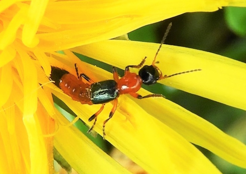 Udo: ‘Ik probeer zoveel mogelijk met “nieuwe vondsten” te komen, maar als ik een al eerder getoond object vindt dat mooier en opvallender toont… Dus deze keer: Paderus Fuscipes op een paardenbloem, een kortschildkevertje dat zich in allerlei bochten kan wringen.’