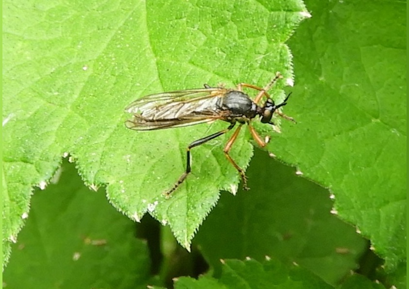 Udo: ‘Roofvliegen hebben een gevorkte middenspriet en zijn verder blijkbaar zo indrukwekkend, dat zij alle van een Nederlandse naam zijn voorzien. Je ziet ze weinig, dus deze keer maar eens de Knobbelbladjager.’