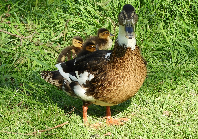 Tenslotte: eenden broeden vaak tot 12 kuikentjes uit. Daar blijven er maar heel weinig van over voor een volwassen bestaan. Piepjonge eendjes worden opgegeten door kraaien, katten, grote snoeken, ratten, nou ja, de natuur kent geen genade. Zo zie je een eend met een stuk of 10 kuikens en zo zijn er nog 2 over.’
