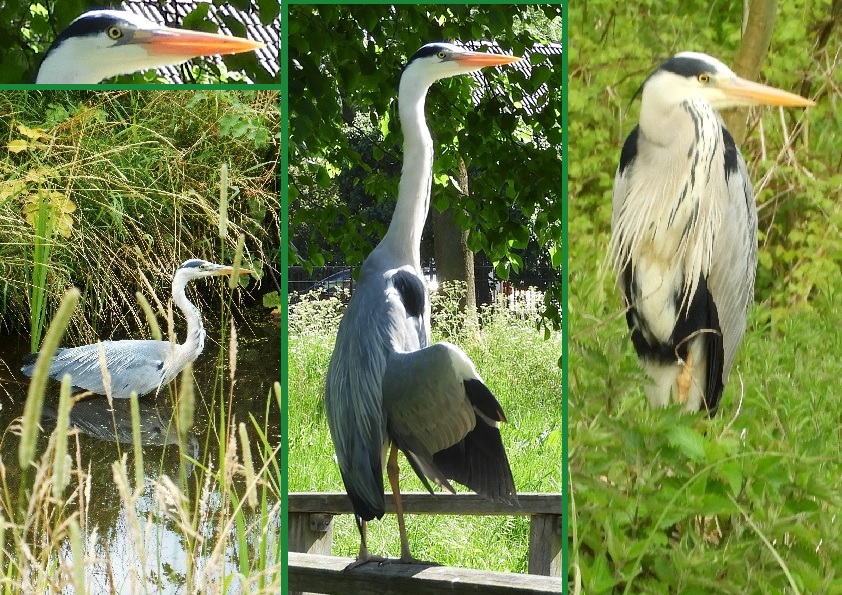 ‘Nog niet zo lang geleden werden er nestpalen voor ooievaars geplant en ja hoor, jonge ooievaars van elders maakten daar dankbaar gebruik van en brengen nu in voorjaar en zomer hier hun jongen groot en zijn daarmee de tweede soort steltvogels in Nieuwegein. Ze zijn geen familie van de reigers en zoeken hun voedsel niet bij de waterrand of in het water maar vooral in het (niet gemillimeterde) gras. Kikkers, mollen, muizen, regenwormen, allerlei wat grotere insecten en jonge vogeltjes eten ze, maar daarvoor moeten ze meestal buiten Nieuwegein op jacht. Het zijn ondertussen de meest gefotografeerde vogels van Nieuwegein dus ik beperk mij tot de reigers.’