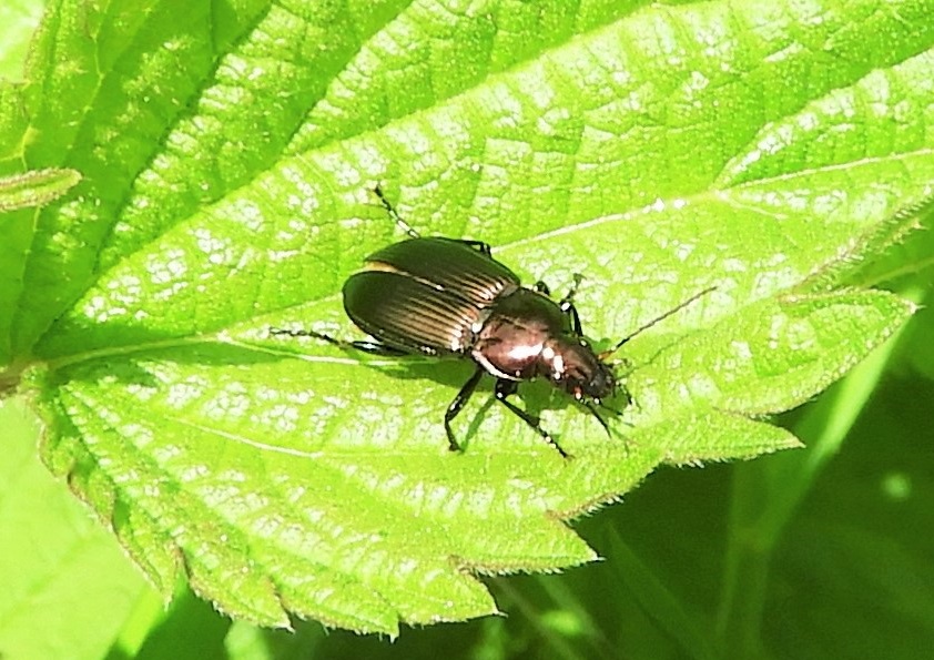 ‘Veel loopkevers zijn gewoon zwart, maar meerdere soorten hebben een mooie, metallieke glans. Dat heeft ook de Koperen kielspriet, die op een blaadje (in de zon zittend) een koperen of bronzen glans heeft. Overigens zijn erg veel loopkevers nauwelijks van elkaar te onderscheiden door kleine kenmerken aan poten, sprieten of bijvoorbeeld de vorm van hun borststuk en dat zie je niet als ze voor je over het pad rennen.’