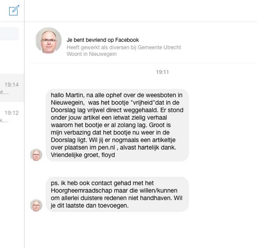 Naar aanleiding van dit artikel liet een lezer weten: ‘Door privéomstandigheden en heftige ziekte is hij er niet aan toe gekomen. Hij heeft daarom zo lang daar gelegen ze zijn er nu mee bezig en hebben hem vandaag vervaren. 28-6-18. De eigenaar is blij met deze hobby en wilt zeker niet van zijn bootje af.’