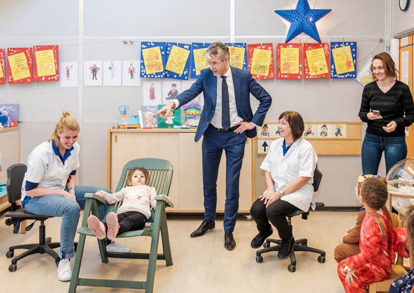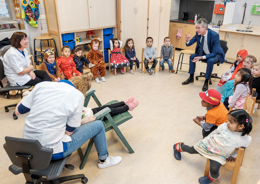 Minister Arie Slob over zijn bezoek: “Goed om in de praktijk te zien hoe kinderen spelenderwijs meer taal leren. En met hoeveel toewijding en enthousiasme de medewerkers de kinderen begeleiden. Mooi hoe hier op de kinderopvang ouders ook taalles krijgen. Samen kun je kinderen de beste start geven.”