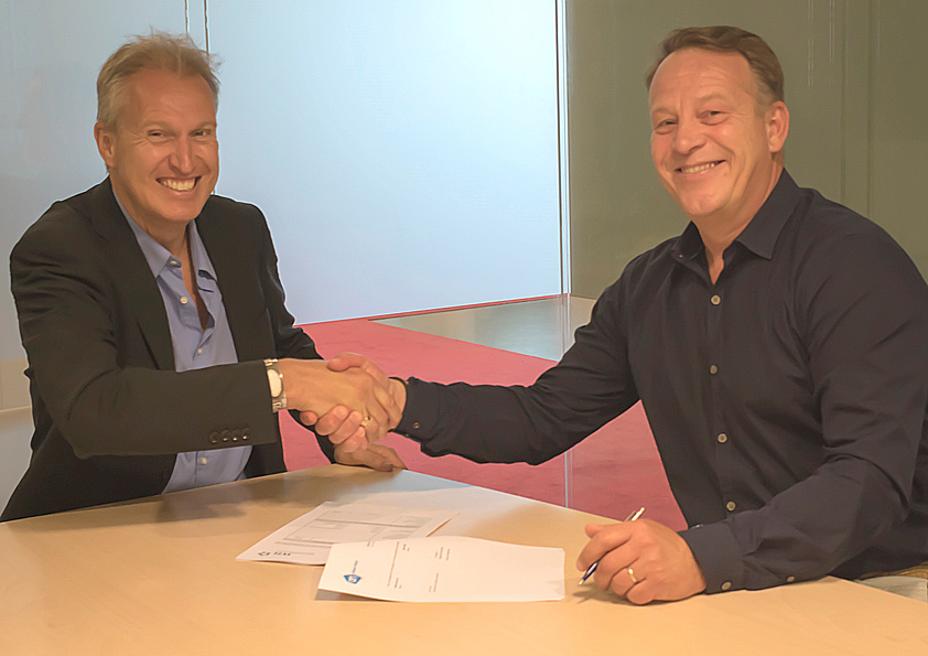 Foto: Annette van Lith. Op de foto van links naar rechts: Rob Esser, directeur WIL en Hank Halsema, Regiolead Participatie en ondertekenaar namens AH.