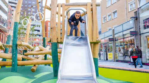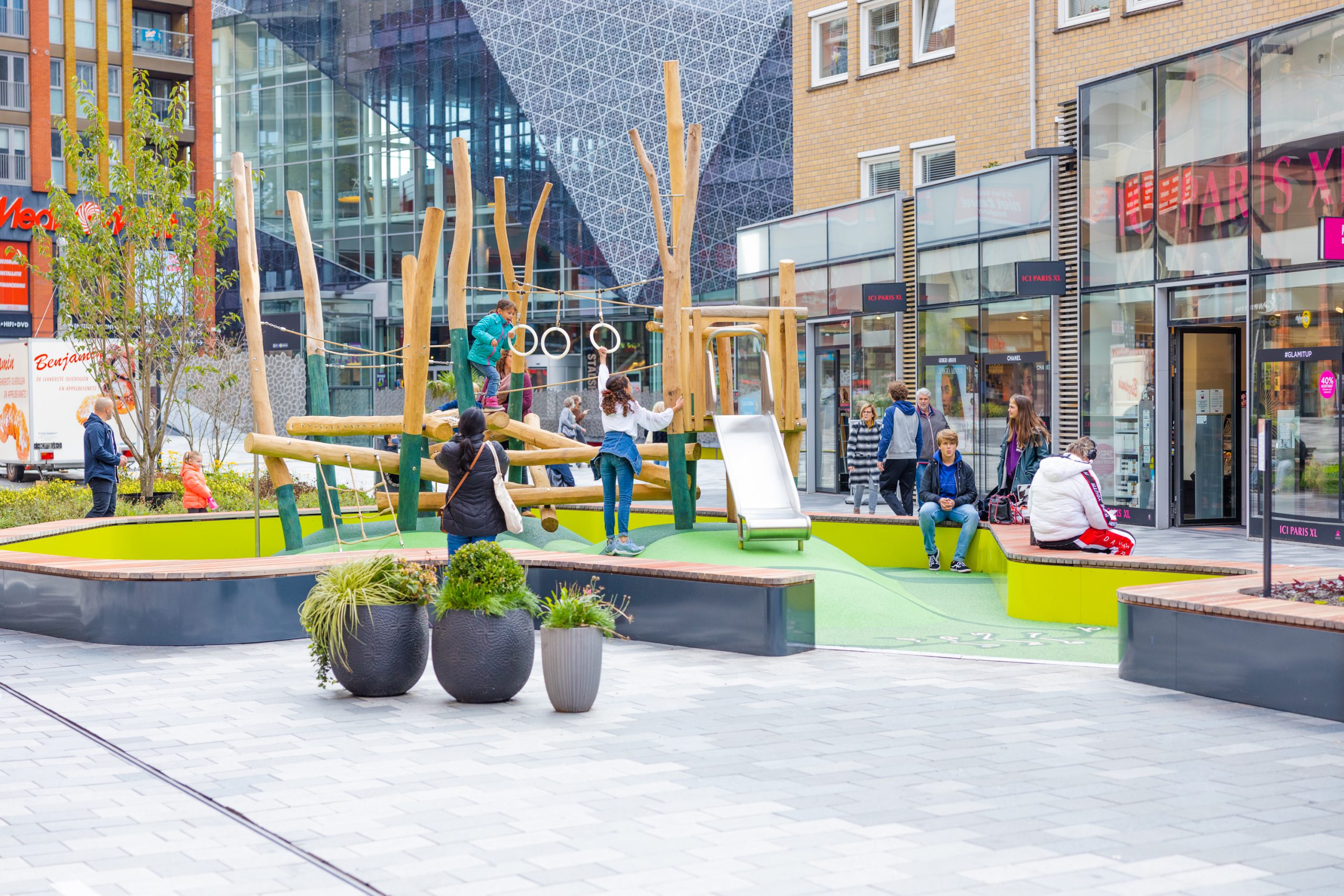 Het plein is gelegen op Raadstede (bij de Only for Men winkel en tegenover T-Mobile) en is ingericht als een klim-bos, ideaal voor kinderen van 2 t/m 12 jaar. Kids kunnen klimmen, in de ringen hangen, hun evenwicht oefenen op de balk en het balanceer-touw of hun energie kwijt op de glijbaan. Zo hebben ouders even hun handen vrij om een pauze te nemen en te ontspannen. Ideaal voor extra quality time met de kinderen tijdens het shoppen. Zo wordt een bezoek aan het winkelcentrum ontspannen en fun voor iedereen!