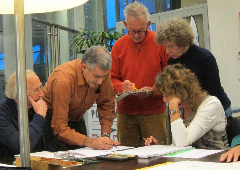 Architect Emad Al Fatly (tweede van links) aan de slag met enkele cursisten