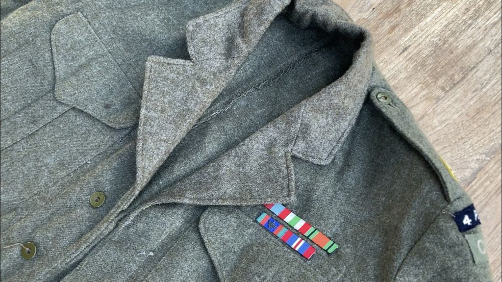 Op Ebay kwam hij een Canadese legerjas tegen. “Toen ik hem binnenkreeg, dacht ik meteen dat het een miskoop was, want de kraag was aangepast”, zegt Valkenburg. Deze was gemodificeerd, zodat de onderkleding beter zichtbaar was. De jas was voorzien van regiment- en rangemblemen en onderscheidingen. Hij probeerde het regiment van de soldaat in kwestie te achterhalen, maar belandde op een dood spoor. “In die tijd was online minder informatie verkrijgbaar. Bovendien dacht ik dat het jasje niet origineel was, dus toen ben ik gestopt met zoeken”, aldus Valkenburg.