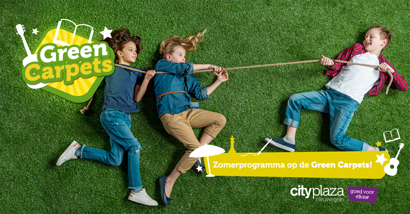 Cityplaza organiseert deze zomer weer de Green Carpets. Verspreid door de binnenstad van Nieuwegein liggen van 11 juni tot 10 september 2017 groene speelveldjes. In de weekenden is er op de Green Carpets van alles te beleven. Doordeweeks kunnen bezoekers ontspannen aan picknicktafels en spelen uit de speelgoedkisten en zandtafels die bij de Green Carpets zijn neergezet.