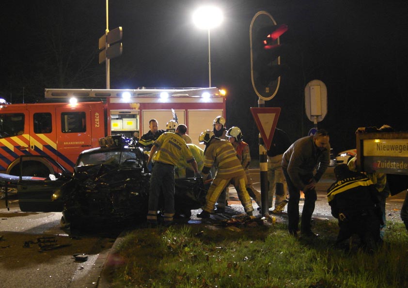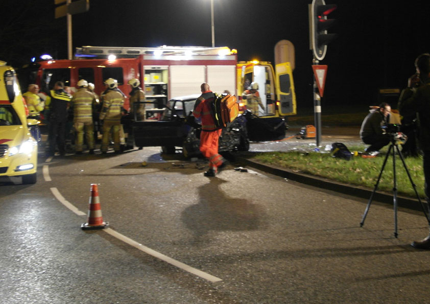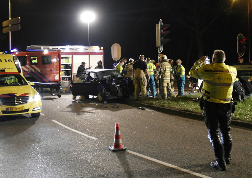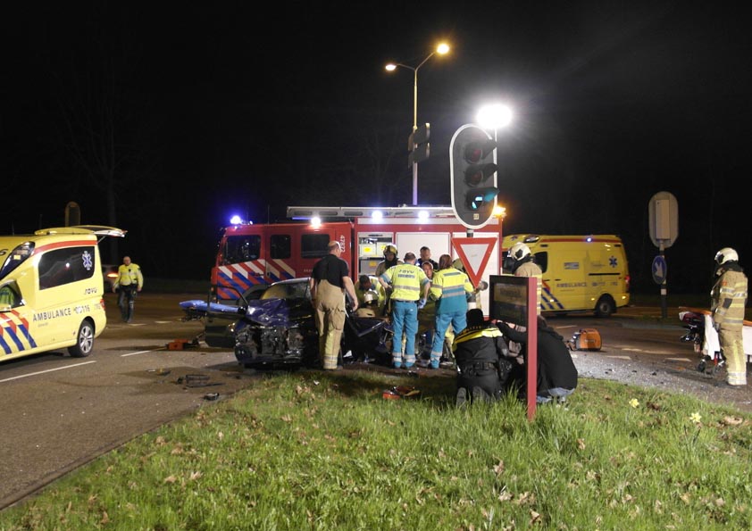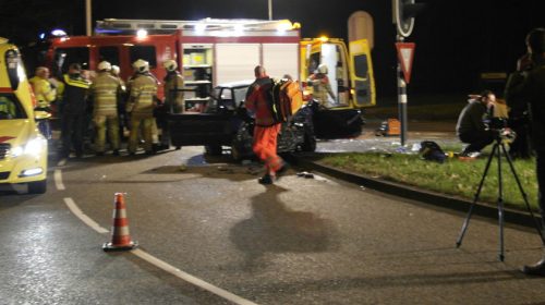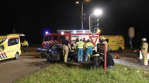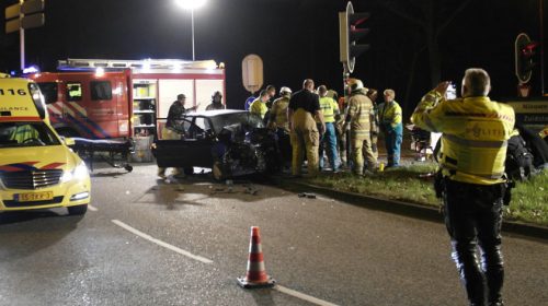 Beide auto’s lagen behoorlijk in de kreukels. De kruising was tot 22.15 uur afgesloten vanwege onderzoek door de politie. De exacte toedracht is nog onbekend.